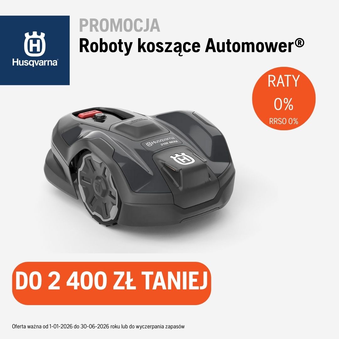 Kup wybrane roboty koszące w obniżonej cenie. Oferta ważna od 1-01 do 30-06-2026 roku